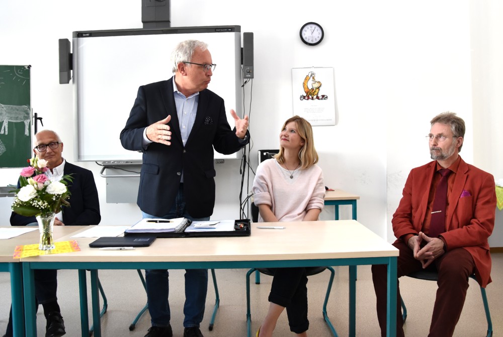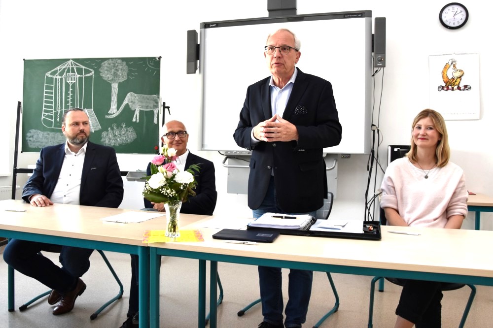 Mit unserem Schulleiter, Herrn Gläsemann, dem Geschäftsführer der FAWZ gGmbH, Herrn Enkelmann, und dem stellvertretenden Bürgermeister, Herrn Wichary, war die Runde komplett.