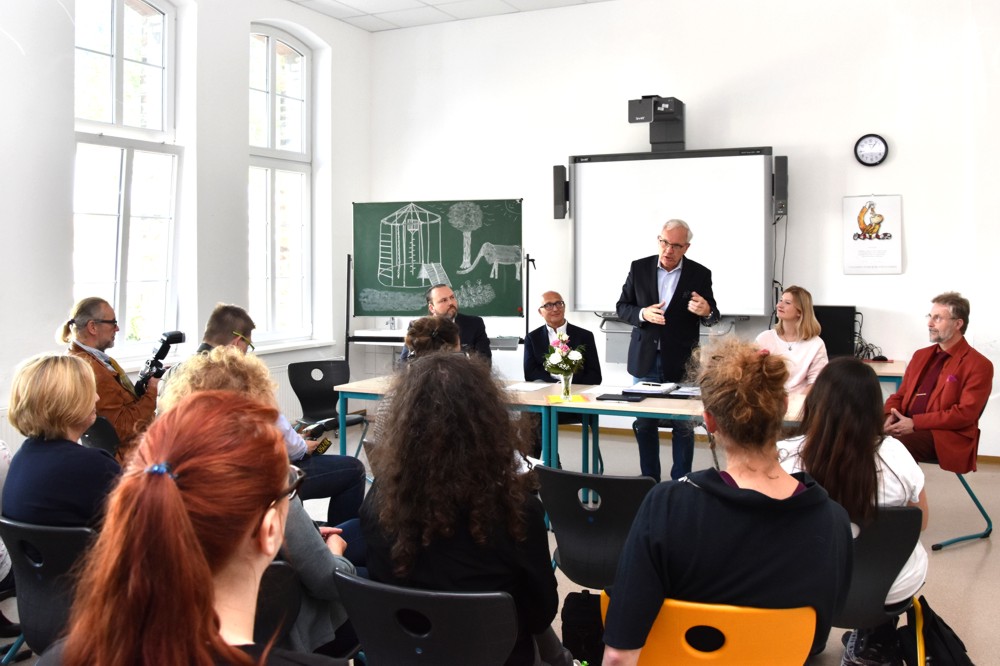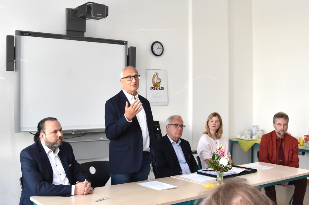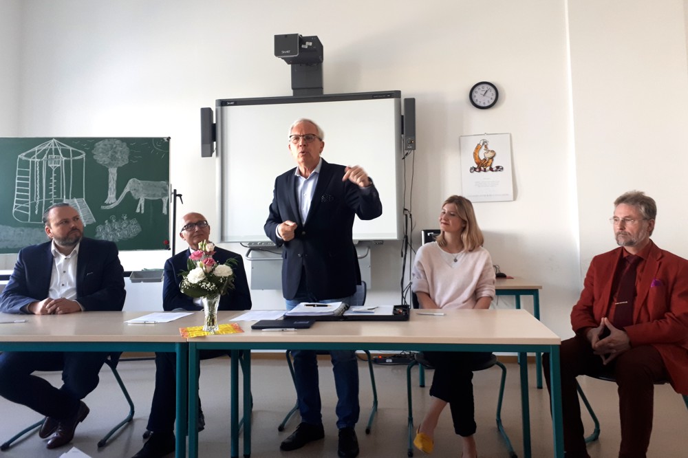 Herr Gläsemann eröffnete die feierliche Zusammenkunft. Nach einer kurzen Begrüßungsrede übergab er das Wort an Herrn Prof. Dr. von der Heyden, der allen Gästen unser gemeinsames Studien-Vorhaben näher erläuterte. Es folgten Worte von Herrn Enkelmann und Herrn Wichary bevor es an den feierlichen Akt der Unterzeichnung ging. Im Anschluss wurden Fragen beantwortet.