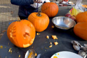 Bunt gemischt, von der 5. bis zu 9. Klasse, hieß es am Mittwoch erst einmal „Kennenlernen“. Wer ist wer und kommt von wo? Berührungsängste? Nicht die Bohne! Oder „Nicht der Kürbis?“, denn darum ging es eigentlich am ersten Tag. Es wurden munter Kürbisse ausgehöhlt, lustige und gruselige Fratzen vorgezeichnet, um diese dann fein säuberlich mit kleinen Messern in die Kürbisse zu schnitzen. So ein Kürbis kann ganz schön hartnäckig sein und so unterstützten unsere Pädagoginnen immer dort, wo gar nichts ging. Zur Belohnung gab es für alle selbst gekochte Kürbissuppe aus dem Eintopfofen.